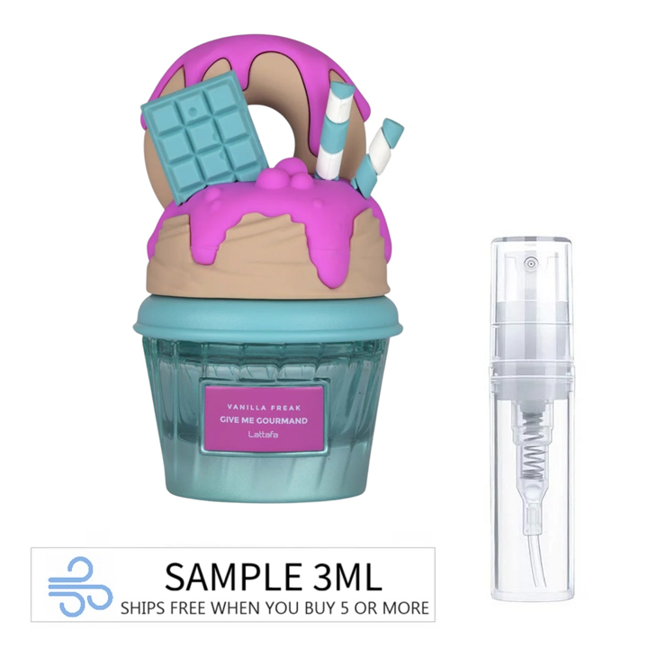 Lattafa Give Me Gourmand Vanilla Freak. Because these bottles are smaller and more expensive than most Lattafas, we are offering them as 3ML decants instead of 5ML to keep them affordable.